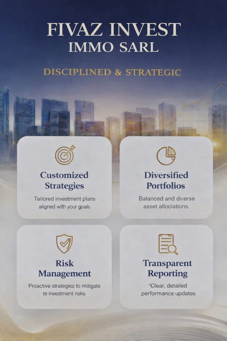 Chez Fivaz Immo Invest, nous reconnaissons que chaque parcours d’investissement est unique, façonné par vos objectifs personnels, votre tolérance au risque et votre vision à long terme. Notre mission est de vous fournir les outils, les analyses et les stratégies nécessaires pour faire croître votre patrimoine et sécuriser votre avenir financier en toute confiance.